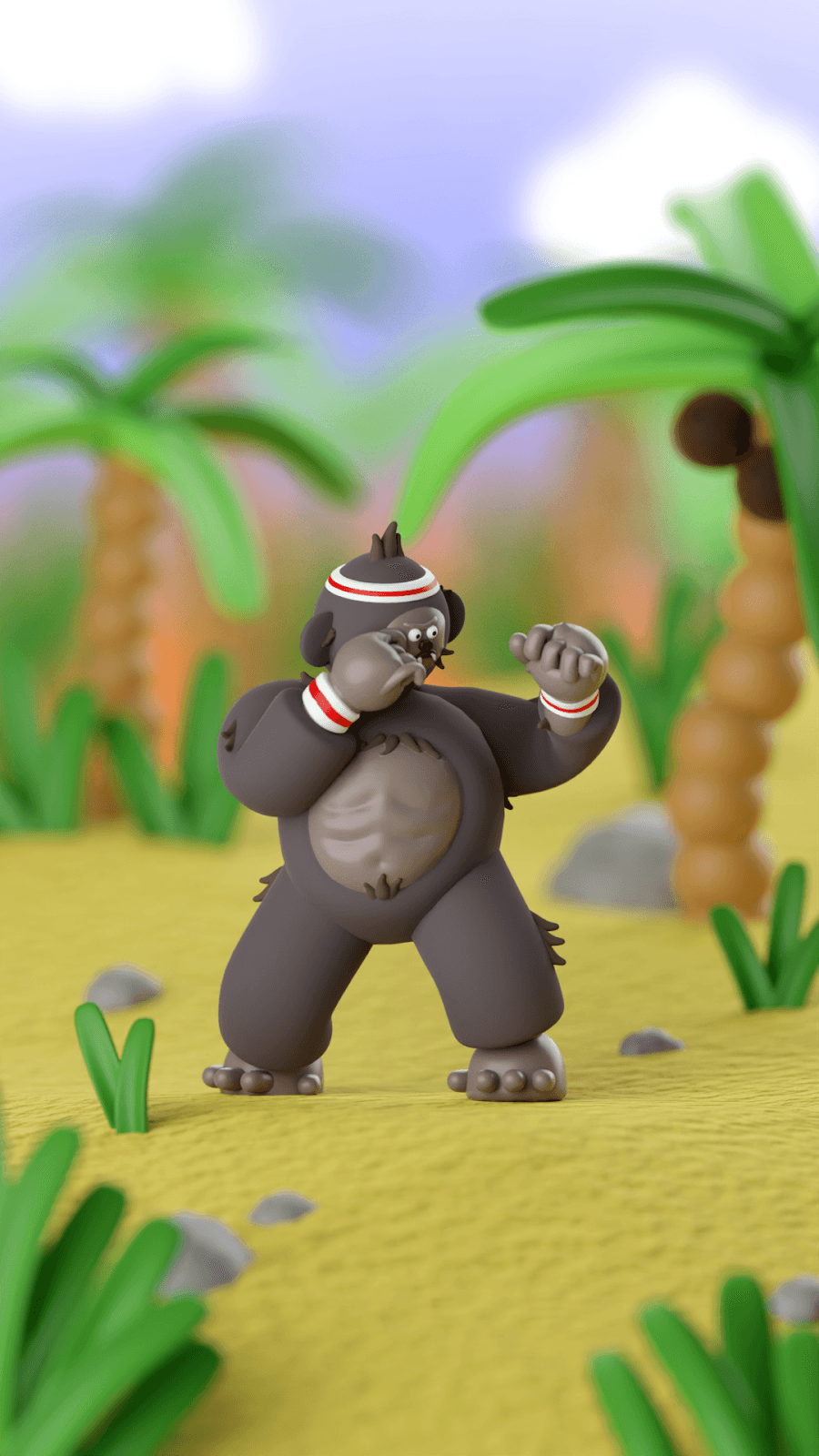 "My favourite part of this project was designing and animating the gorilla characters, it was so fun to try and make them look strong but still very cheeky and silly. I also loved playing with the type, and making poppy, summary letters that made me think of tropical vibes, but also yummy frappes."