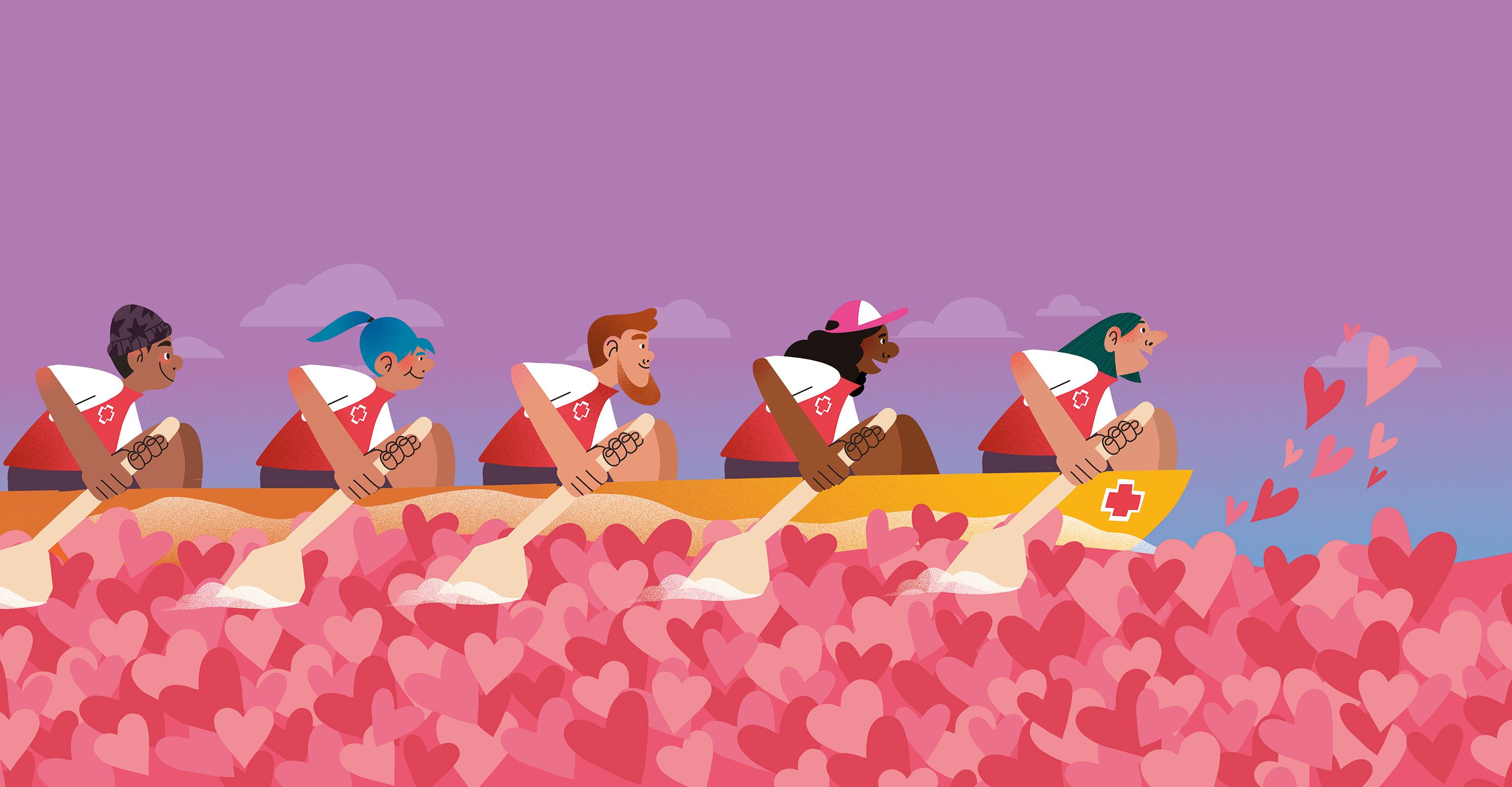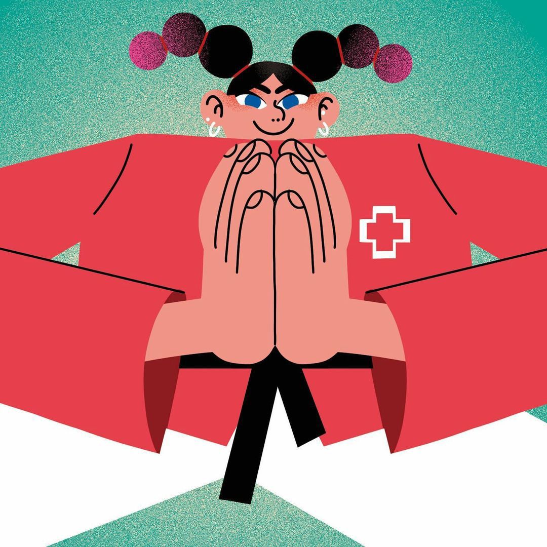Genie used her signature empowering character design to interpret the illustrations for the tickets to invoke the triumphant feelings of the Olympics, as the draw takes place at the same time of year, but putting the people who the Red Cross helps at the centre, from assisting people fleeing conflict, to protecting the most vulnerable in society.
