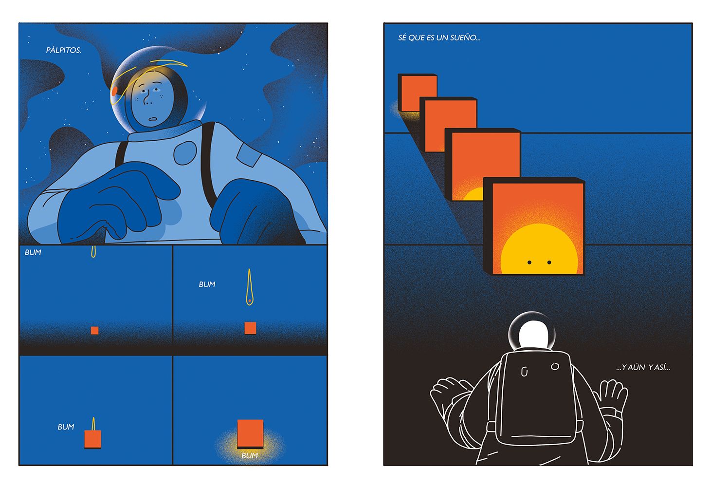 Genie illustrates a world for our main character, who is discovering herself through letters from her father, who has passed away. We fall into empathic, emotional pages filled with colour and feelings as we are made to think, throughout the short comic, of our inherited personality traits from our parents and family.
