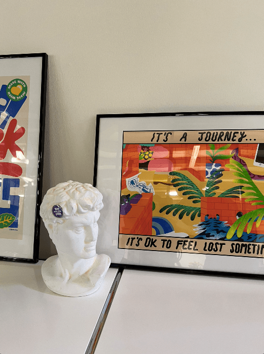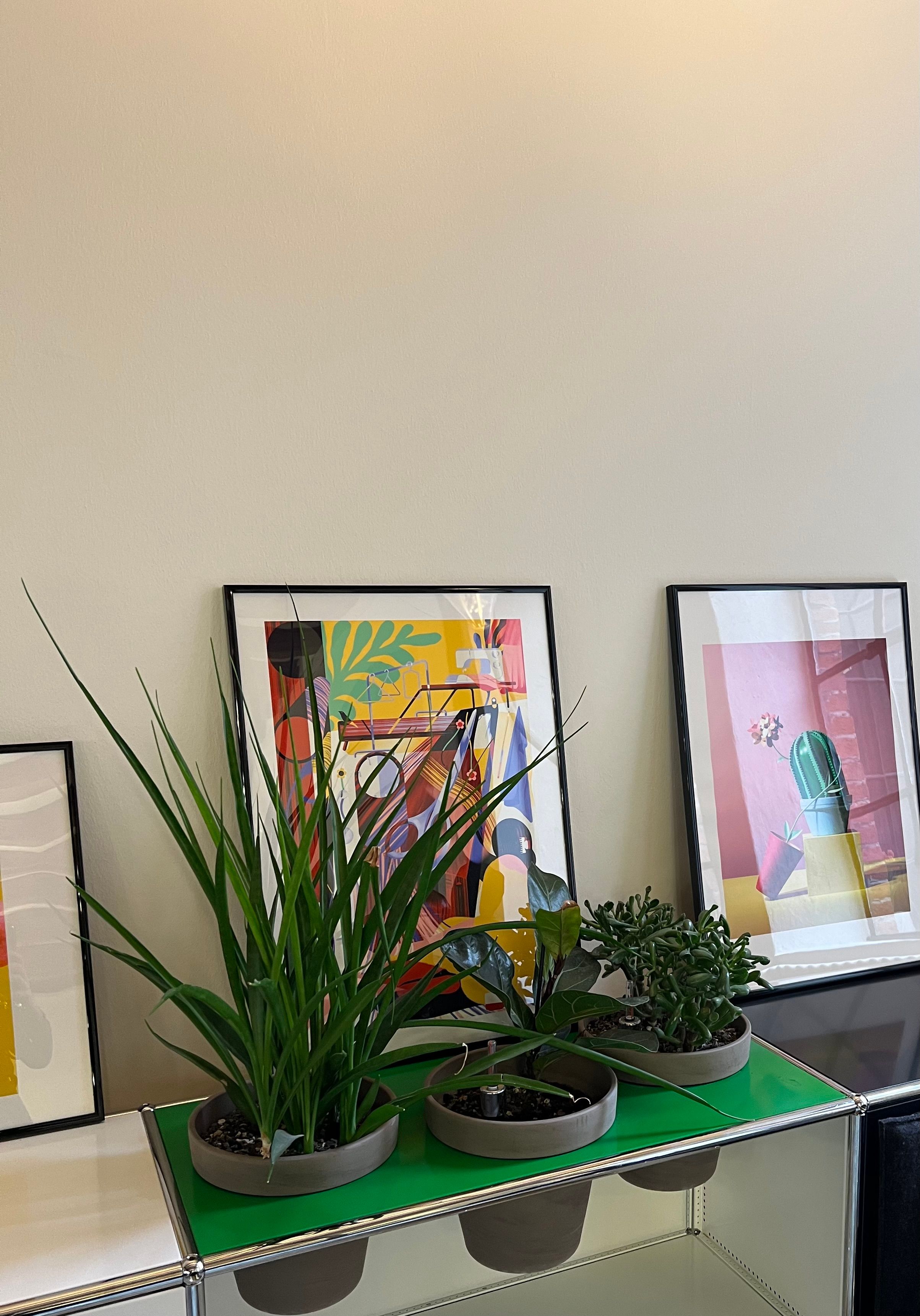 With bright prints adorning the walls, plenty of plants dotted around, and dulcet tones coming from the record player, as the latest haul from nearby record shops ride the airwaves, the studio provides a serene and inviting space for our team, artists and clients.