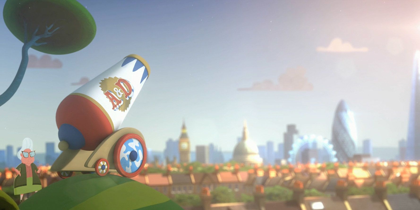 In terms of the animation we did all the character animation in Flash. The 3D was made in Cinema 4D. Backgrounds were painted in Manga Studio and the whole thing was comped in After Effects. We did lots of tests to make sure all the 2D and 3D married up – we wanted the 3D and 2D to really integrate. We used lots of painterly textures in the 3D and painted lighting effects into the 3D models.”
