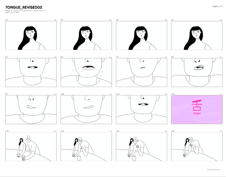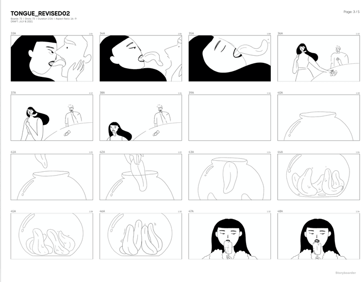 Focusing on the tongue as an emblem of both pleasure and pain Kaho’s mixed-media approach adds texture and intrigue to the narrative. The sound design became an important aspect of the film, with Ana Roman creating the visceral soundscapes. Kaho wanted the tongue sounds to evoke sensuality but become borderline grotesque throughout the film.