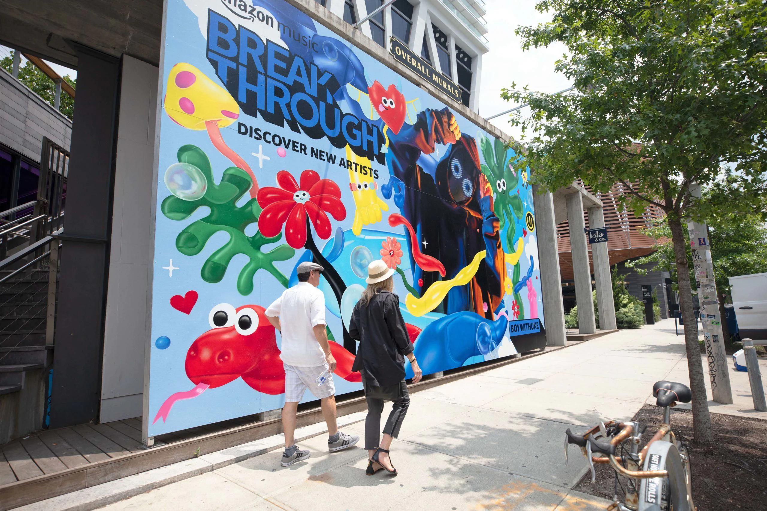 Above ^ images from the Amazon Music Murals project Ross worked on with Justin Poulter, Eva Cremers, Genie Espinosa & James Dawe.