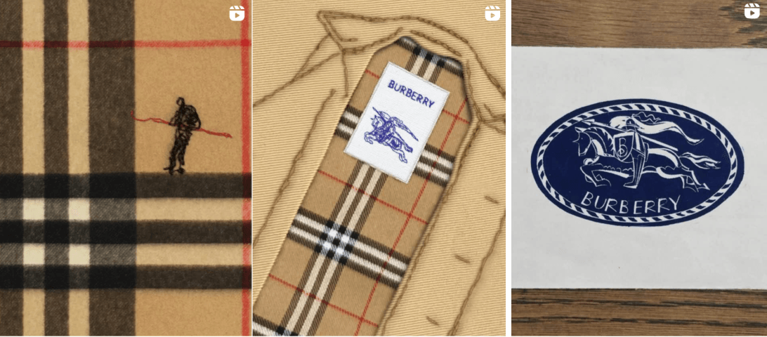 Above: From Burberry's socials. Artists L-R: Huw Messie x2, Jonathan Gibbs