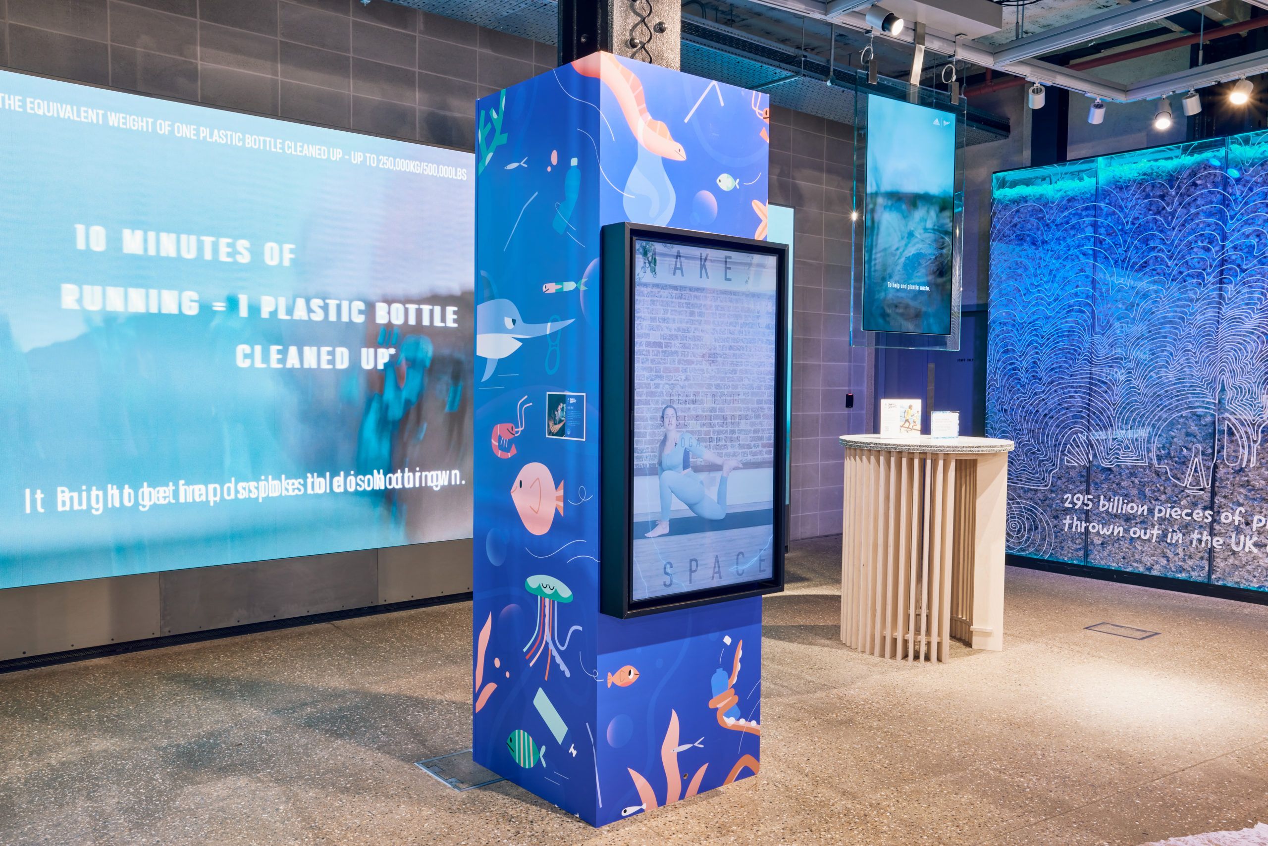 Alongside the characters, Alex created another design to be applied to a central pillar in the store’s design, supporting the brand’s ‘Run for the Oceans’ campaign where ten minutes of running equals one plastic bottle removed from the ocean.