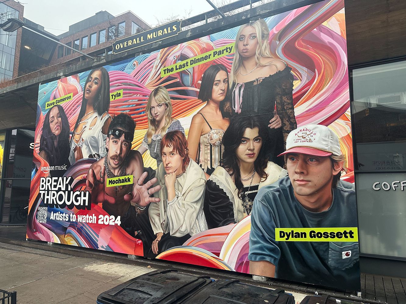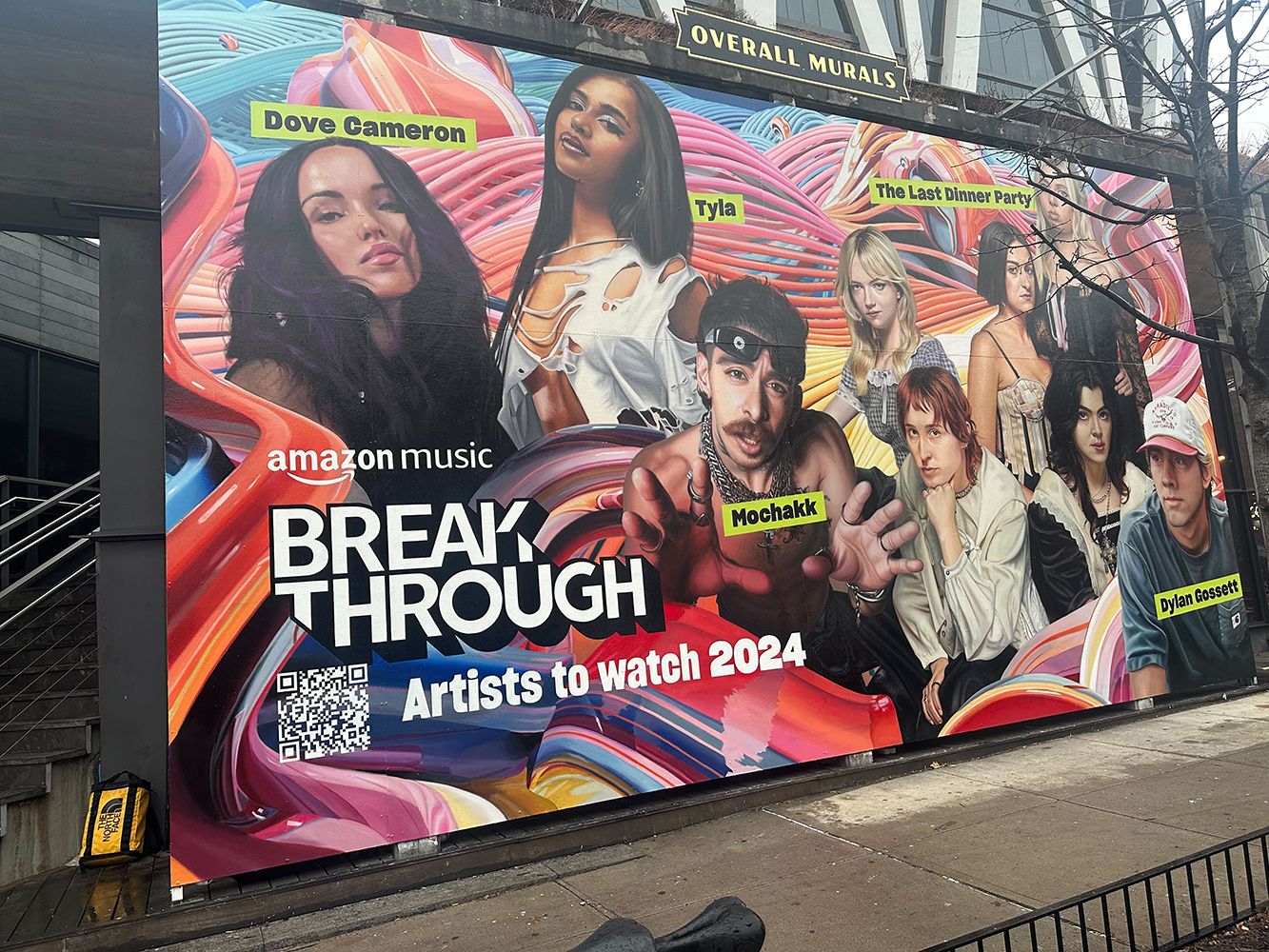 Design Lad collaborated with Amazon Music for their 'Breakthrough' Series. This collaboration involved highlighting new artists with a bespoke illustration and mural painted outside the Amazon Music offices.