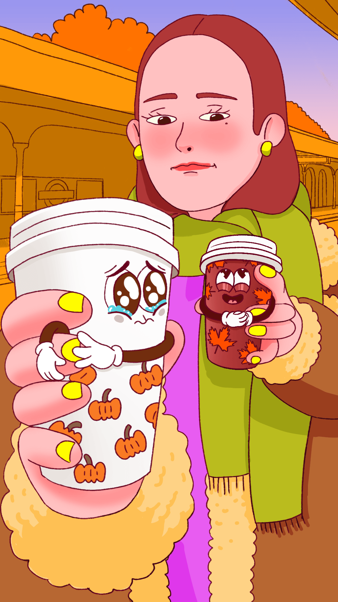 KITCHEN approached this brief in their usual comedic and vibrant style, animating an emotional scene of a heartbroken pumpkin latte being abandoned for a customer's new favourite drink.
