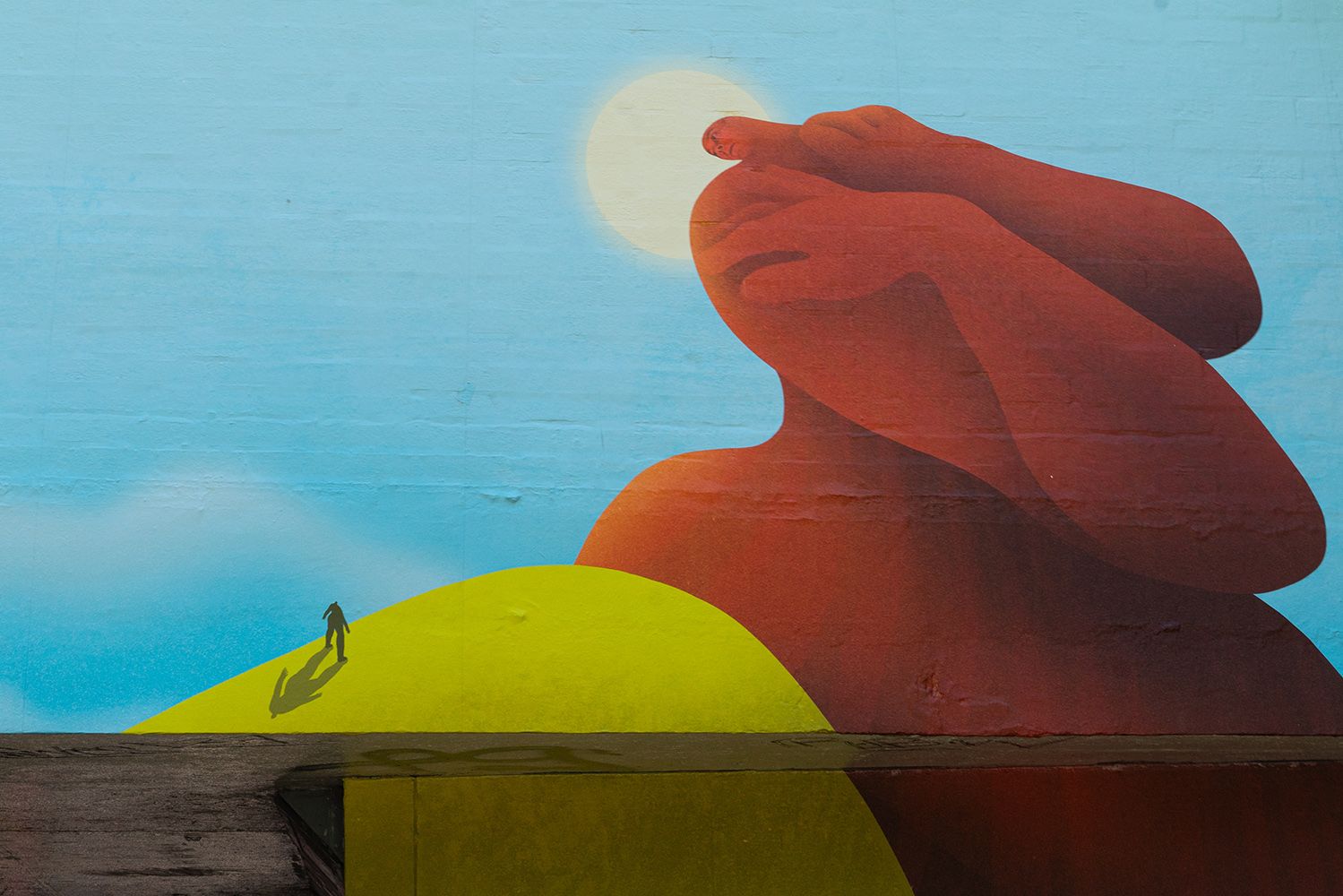 Through scaled up characters, Hayley is able to tell the stories of the three interviewees with sensitivity and an artistic nuance that depicts whole narratives within a single design. As someone who also lives with chronic pain, this project had a personal connection for Hayley who felt that they were able to approach this project with empathy and the care needed.
