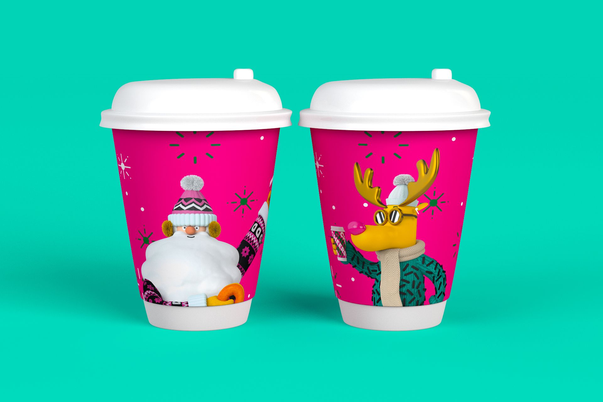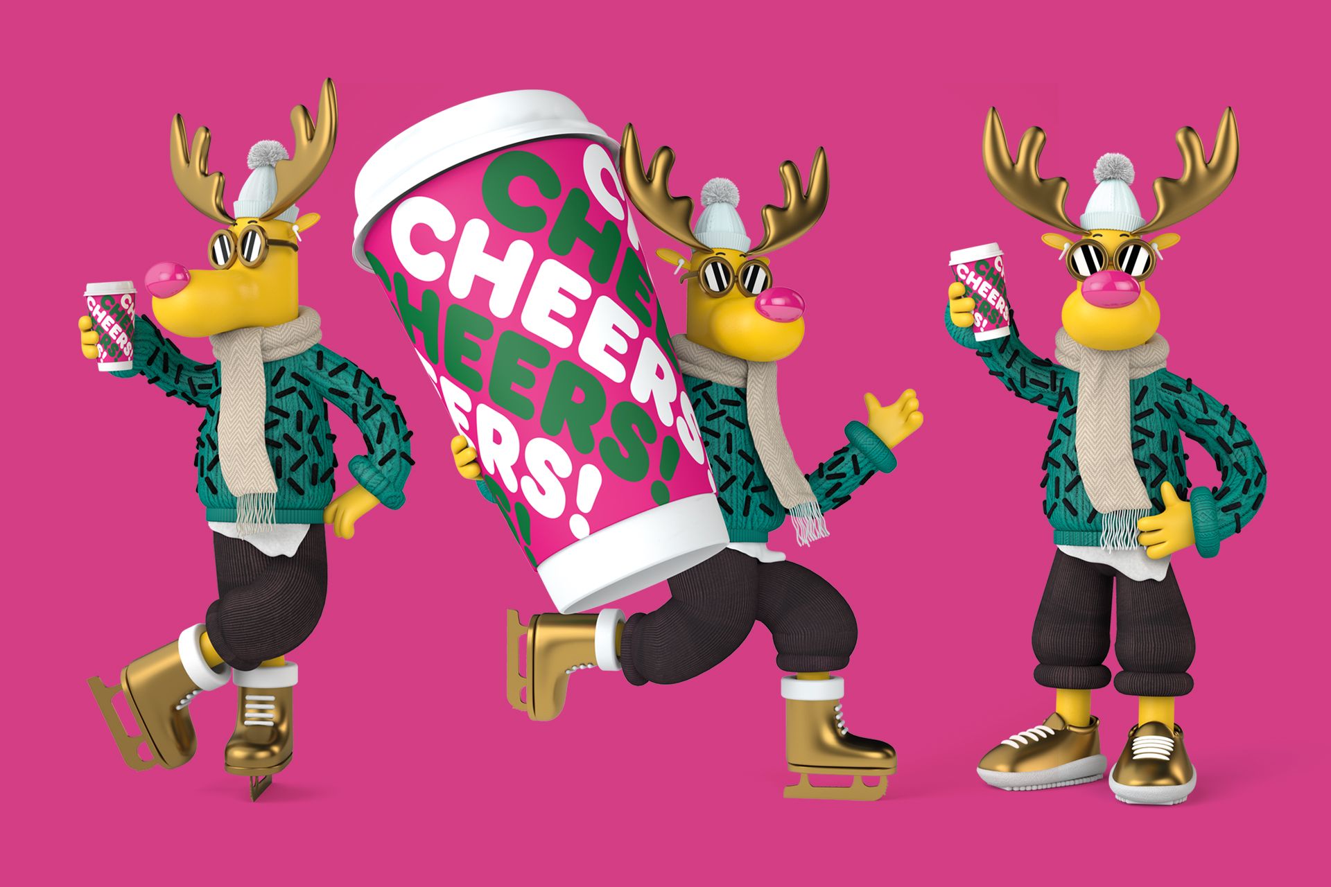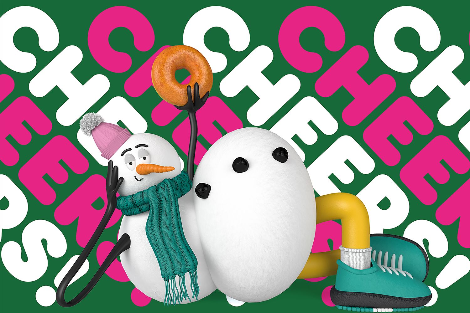 The campaign aims to boost Dunkin’ Donuts’ sales over the holidays and Design Lad’s unique sense of colour and playfulness lends itself to their brand identity. His signature character designs bring the “Cheers!” theme to life in a cool and quirky way.