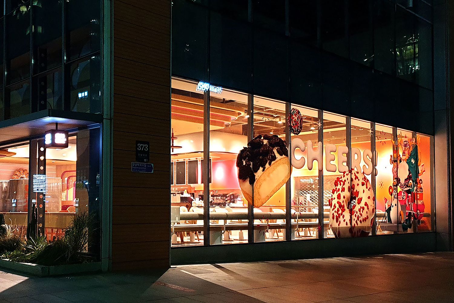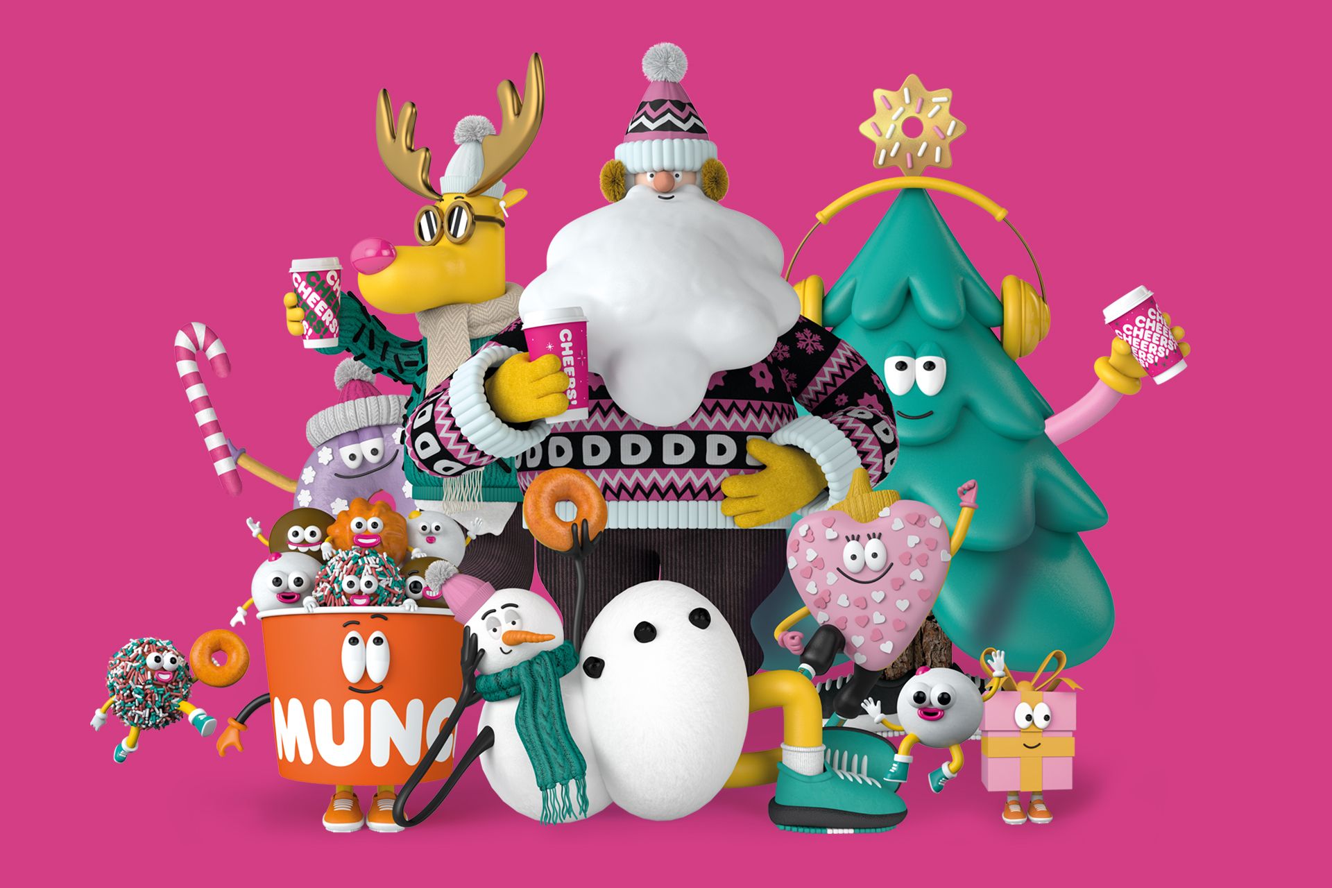 Jelly’s Design Lad has created a series of his delightful trademark characters to bring joy to Dunkin’ Donuts’ Christmas promotion in Korea. Working alongside the in-house creatives at SPC Korea, Design Lad set the scene for the campaign with friendly, happy, open characters in a variety of scenarios, enjoying the festive break.