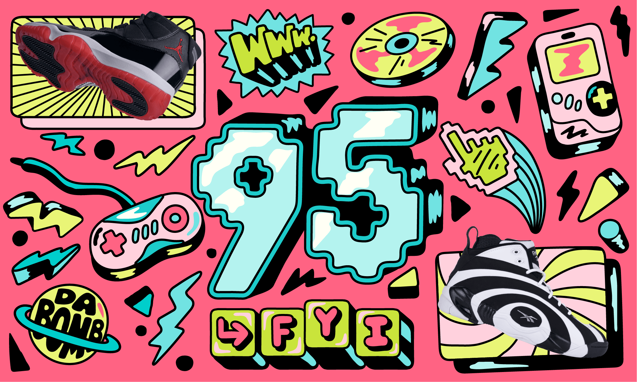 Showcasing the popular sneaker designs from each year and matching customers with the year of their birth, Lebassis crafted designs that are filled with nostalgia and pop culture references alongside bespoke campaign lettering.