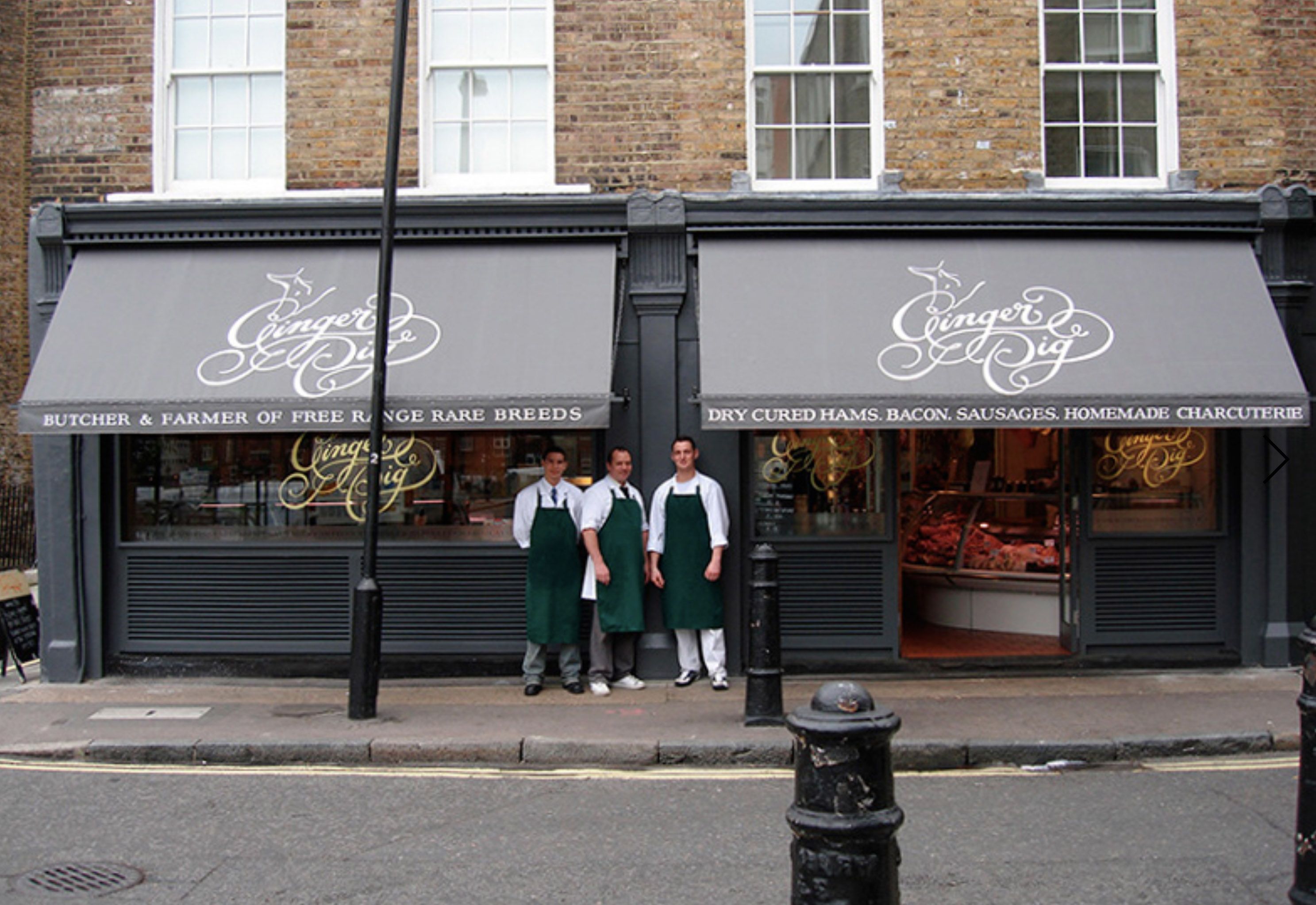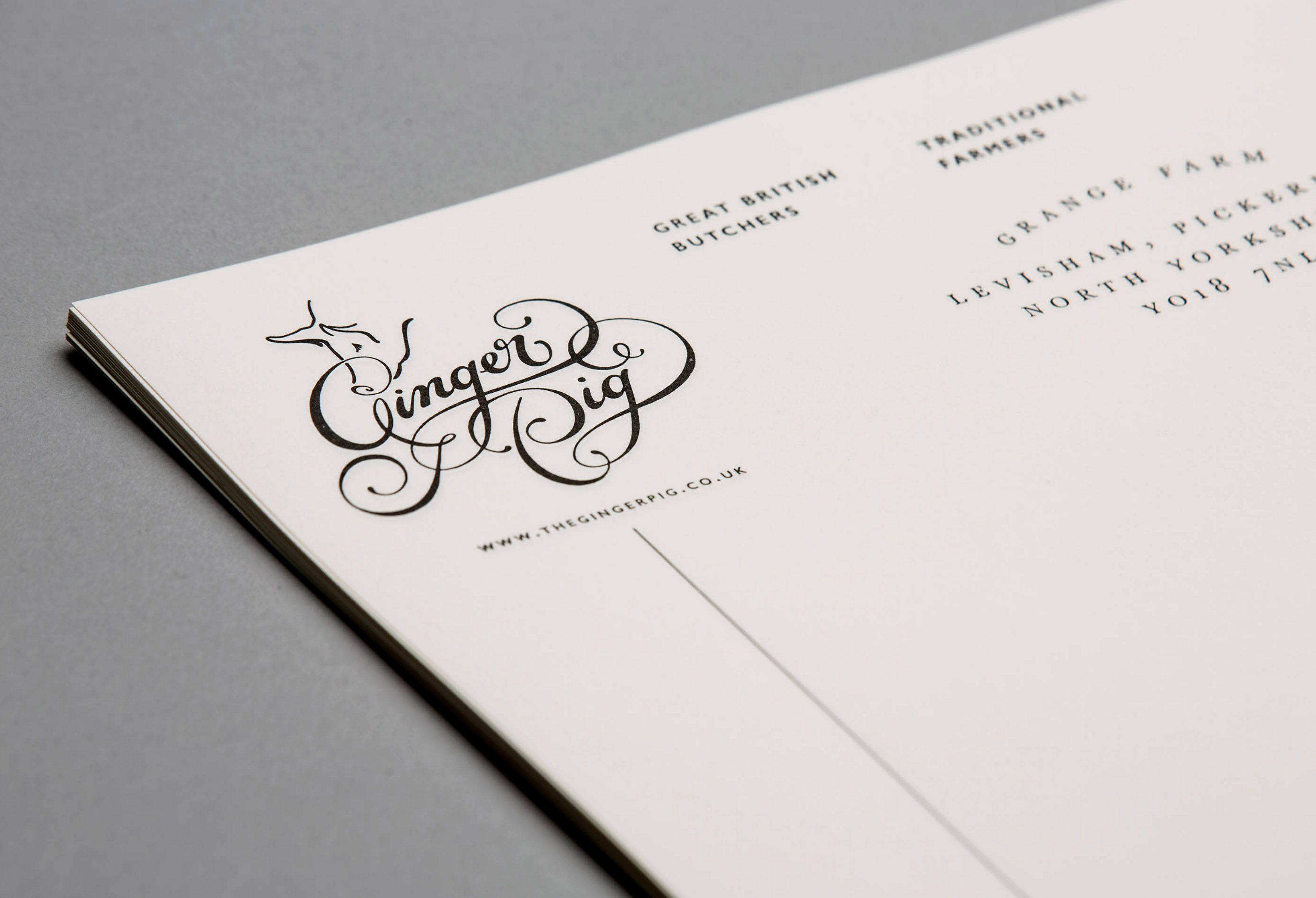 Ginger Pig, Traditional farmers and butchers own eight shops across the UK, and specialise in amazing sausage rolls and butchery classes. Allies Design, who designed all their packaging and identity approached Alison to craft Ginger Pig’s main logo.