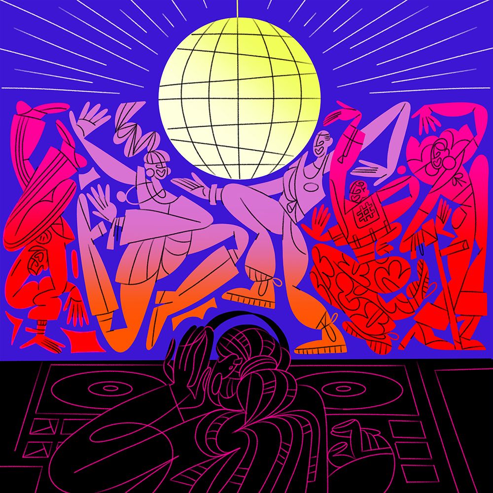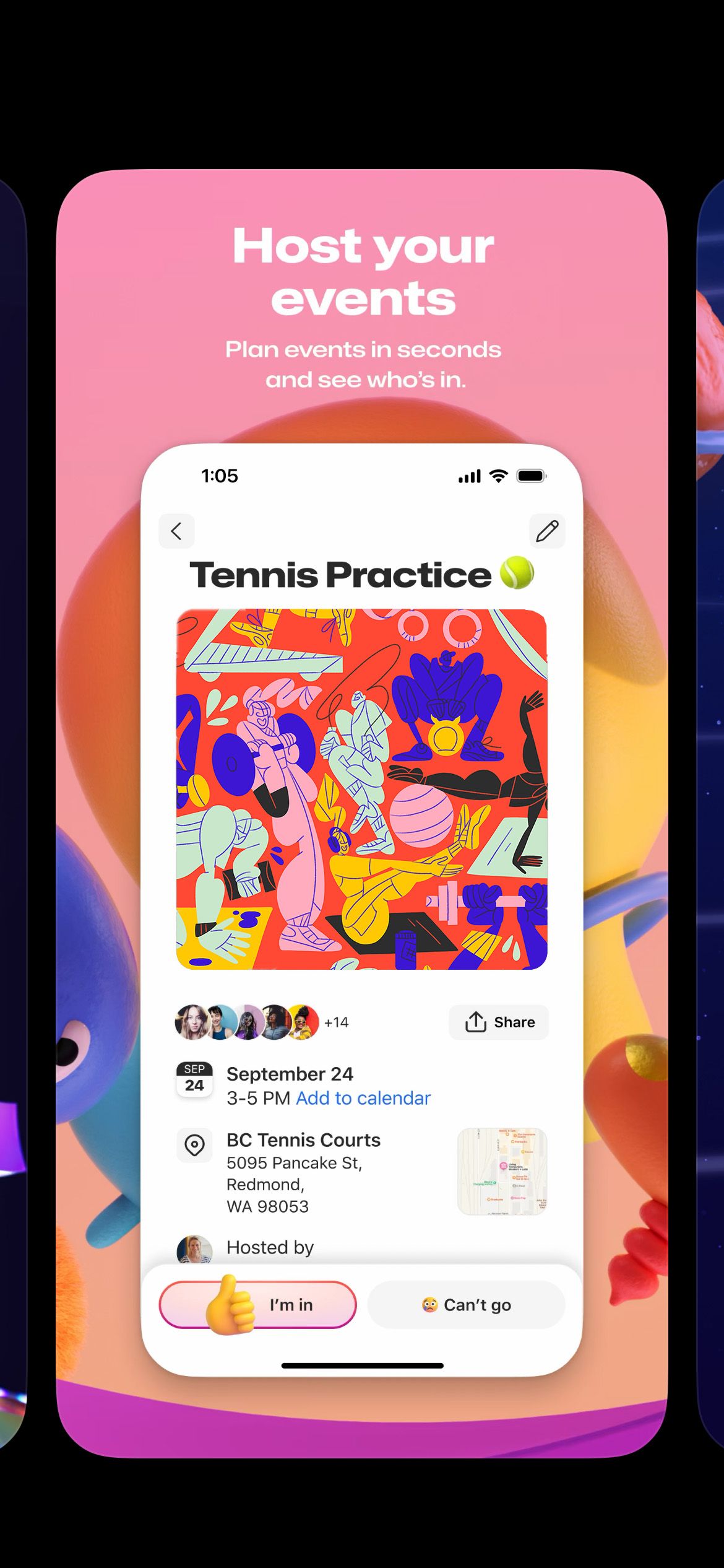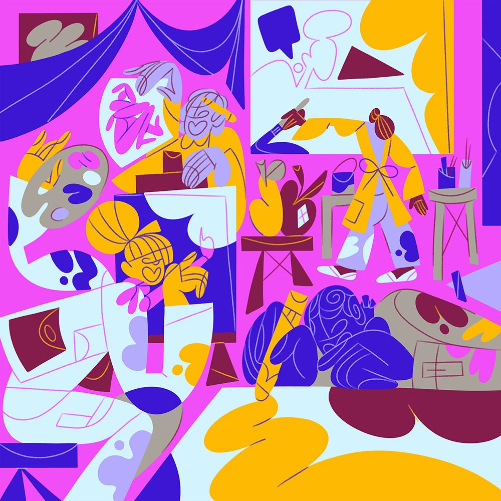 Focusing on the concept of shared experiences and community, Meredith’s designs are bold and expressive with an emphasis on bringing groups together, her signature dynamic characters are depicted in various social situations that can be used across the app from parties to brunches and sporting events.