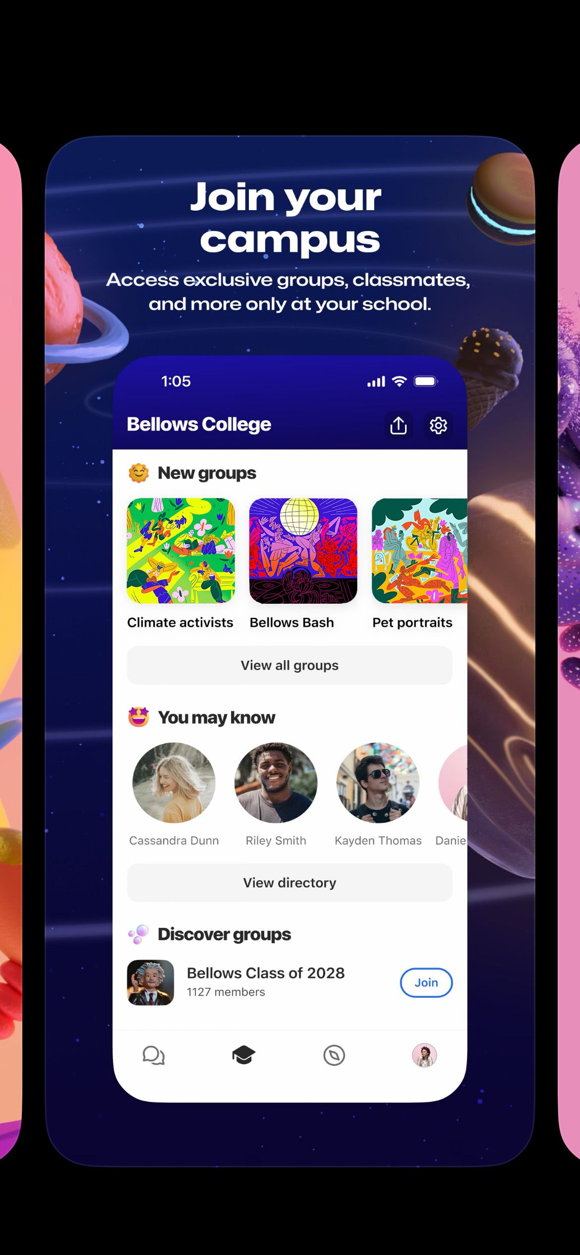 Energetic and bold illustrations for the student-aimed networking app