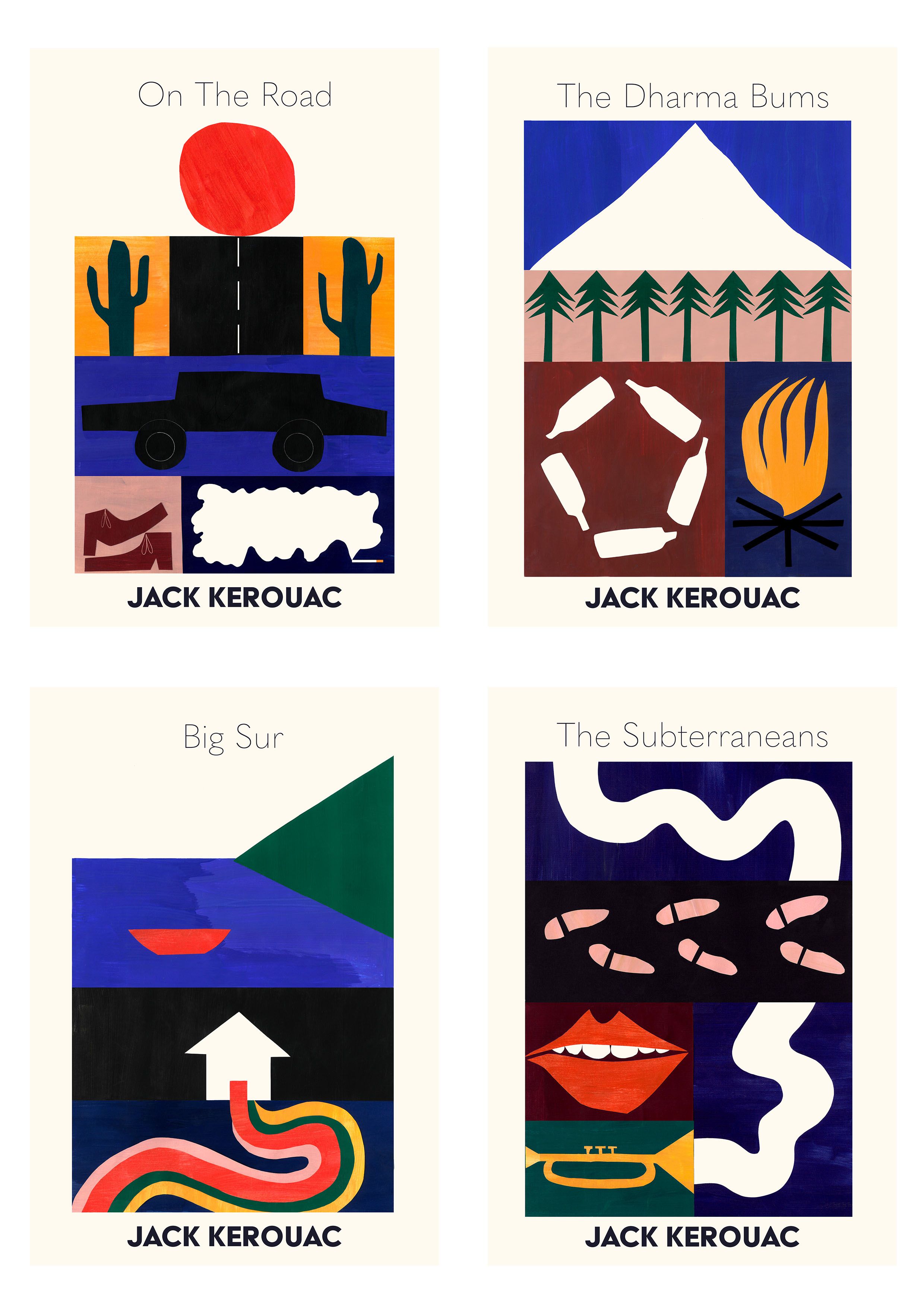 A personal series of Jordan's where she experimented with redesigning the covers for a selection of classic Jack Kerouac books. This is an important project for Jordan as it was one of the first instances that she felt her work was moving in the direction she wanted stylistically.