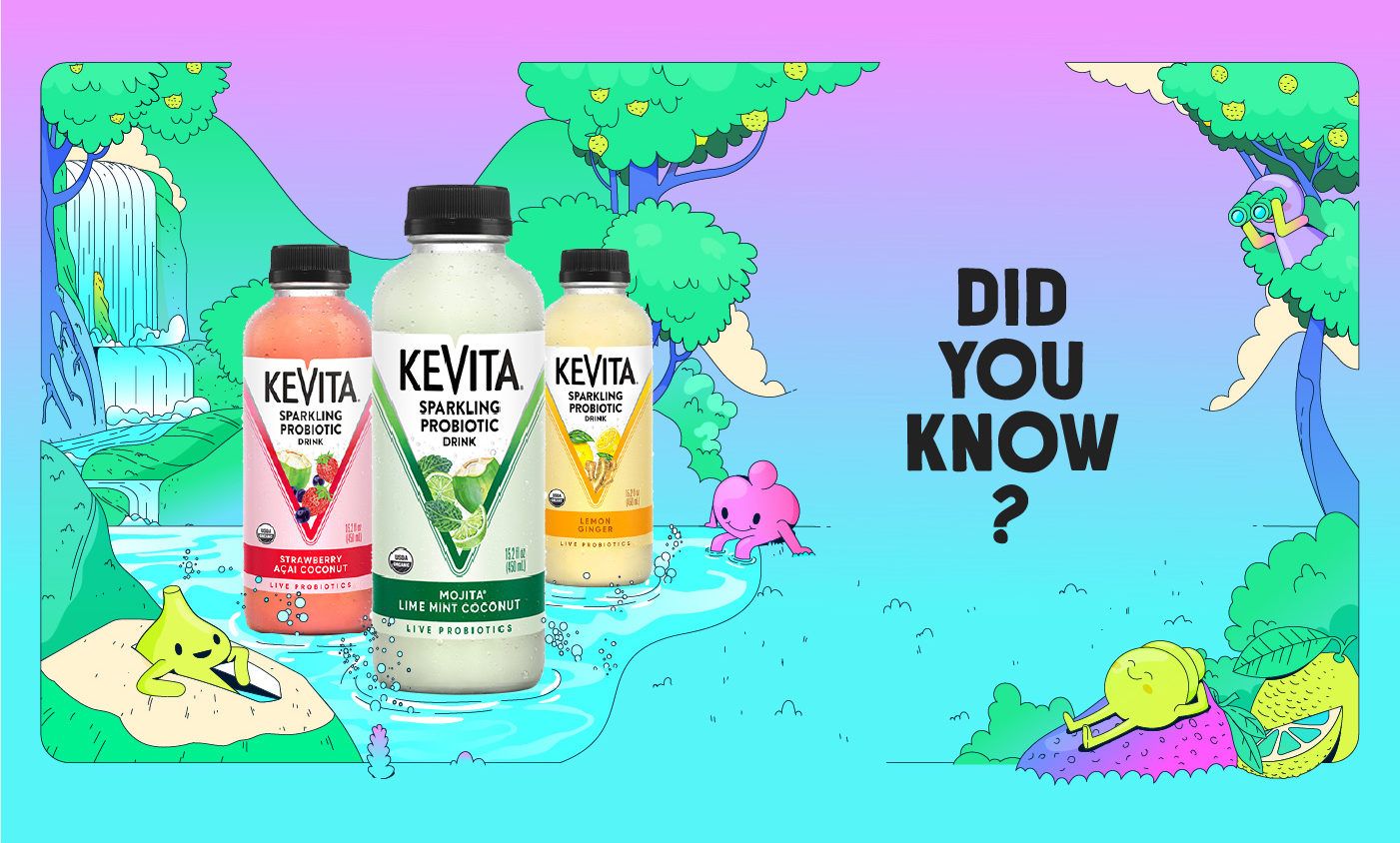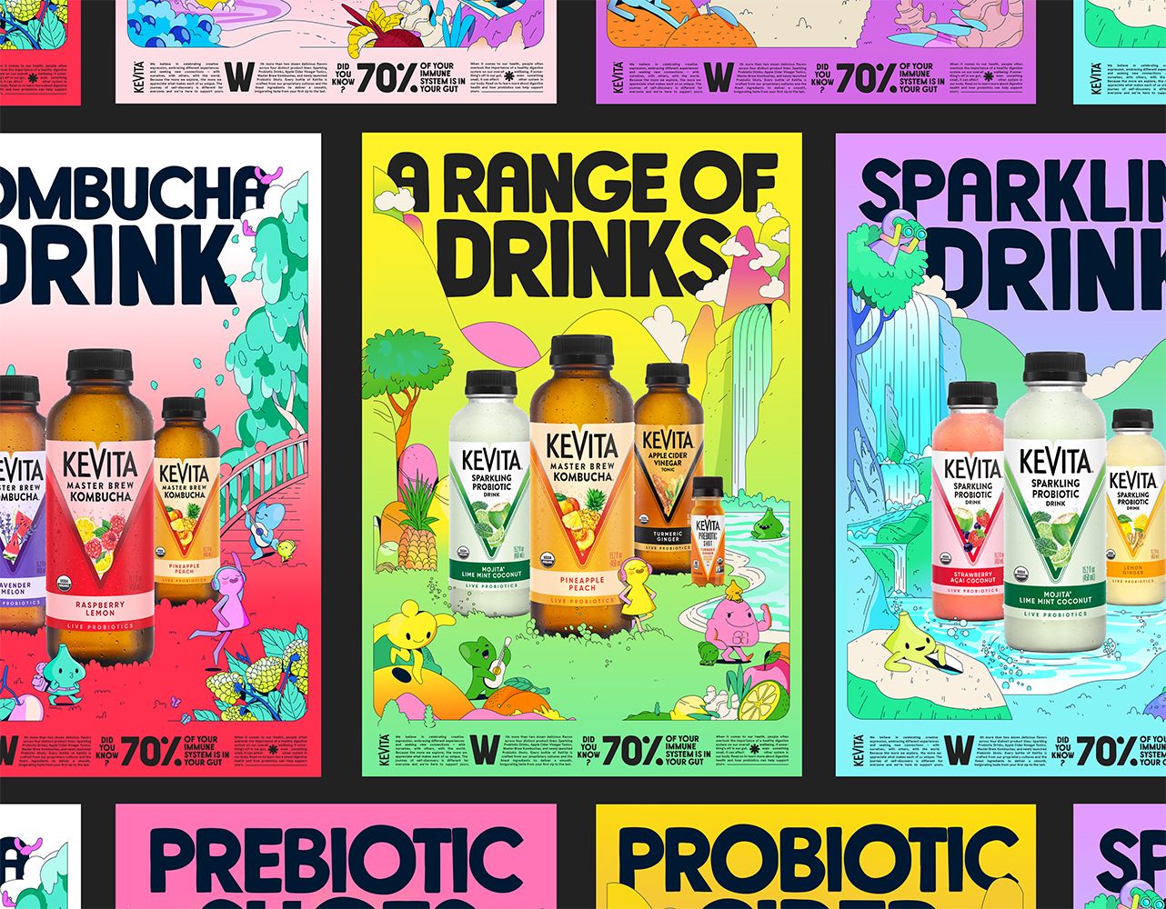 Working closely alongside Adam&EveNYC, Estudio Pum were commissioned together with KITCHEN to develop a new visual world for the US probiotic and prebiotic drinks brand KeVita. ‘For All Gutkind’ is an ode to each and every kind of gut there is.