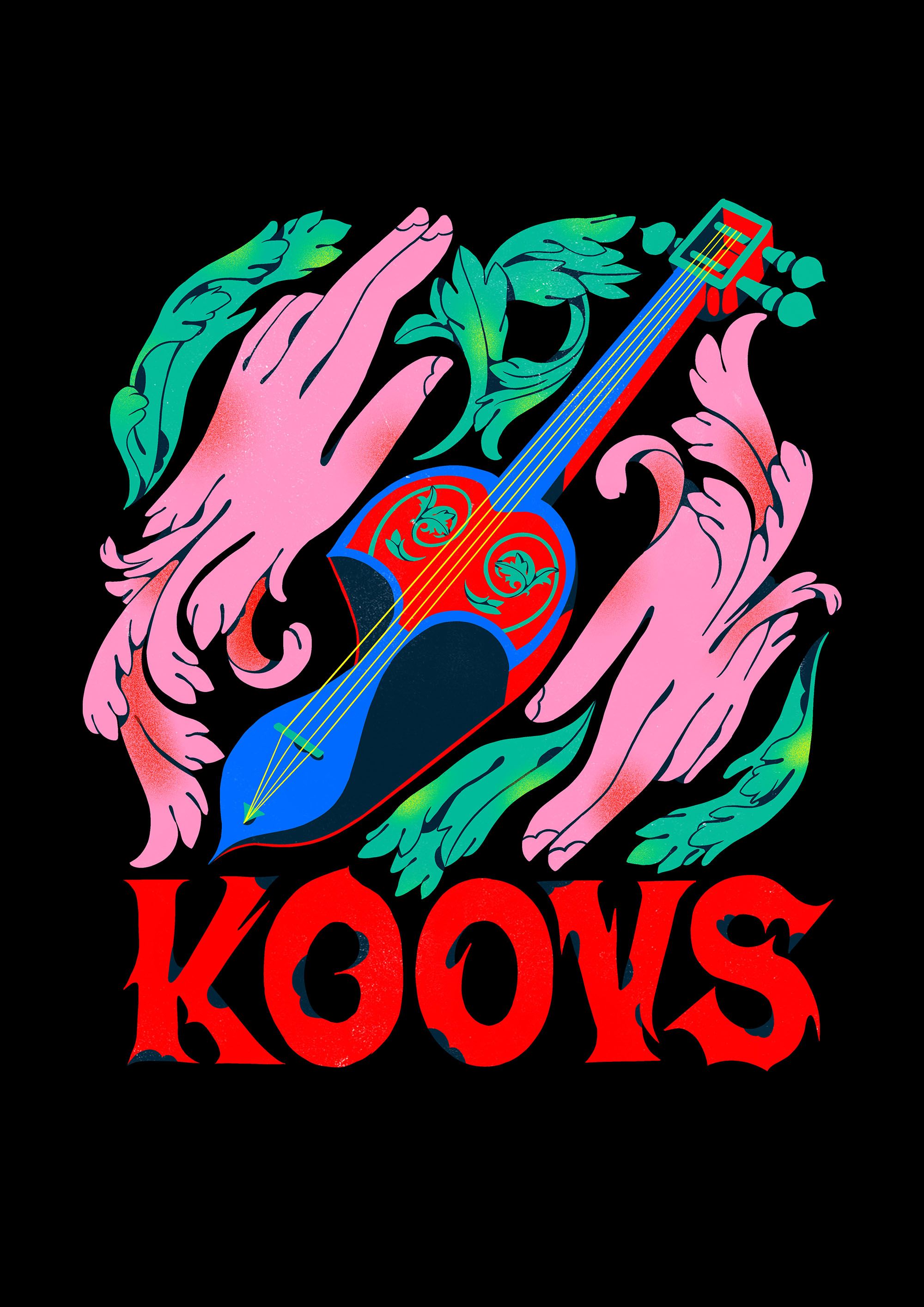 Influenced by Indian mythology and wanting to represent the cultural influence of KOOVS Boomranng created three illustrations to be applied across the garments in the collection. The designs are bold and striking telling the story of how we all ‘concede control’ of our lives to music.