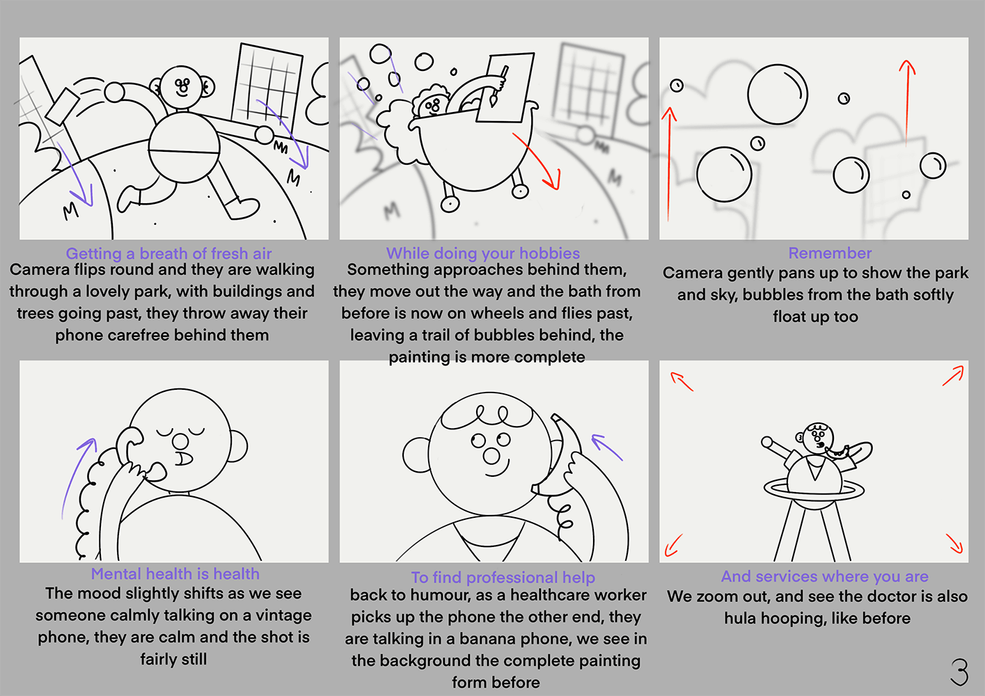 Ensuring the film still conveyed the seriousness of the subject, care was given to make the film lighthearted and fun, with the voice over designed to give the comforting feeling of a friend giving you a gentle reminder to look out for your mental health.