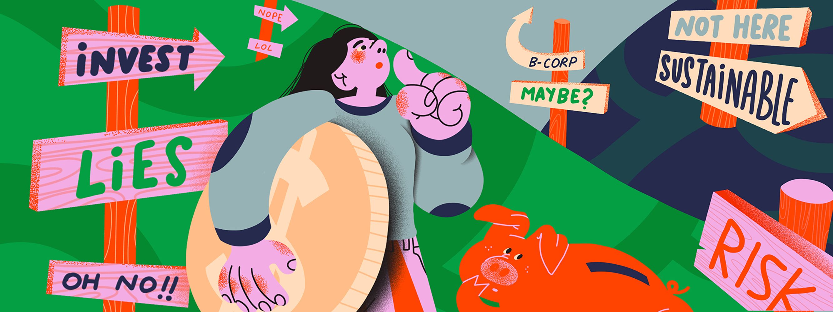 Genie lends her versatile illustration skills to Refinery29's 'Taking Stock' series which focuses on financial articles and advice. Genie's diffused palette and use of scale create captivating illustrations for the modern media site which markets its content towards young women.