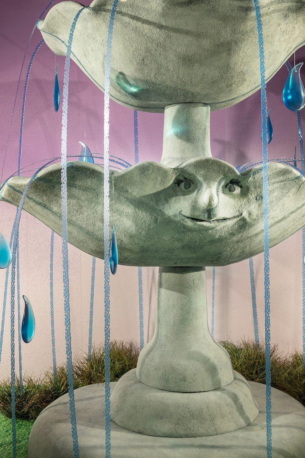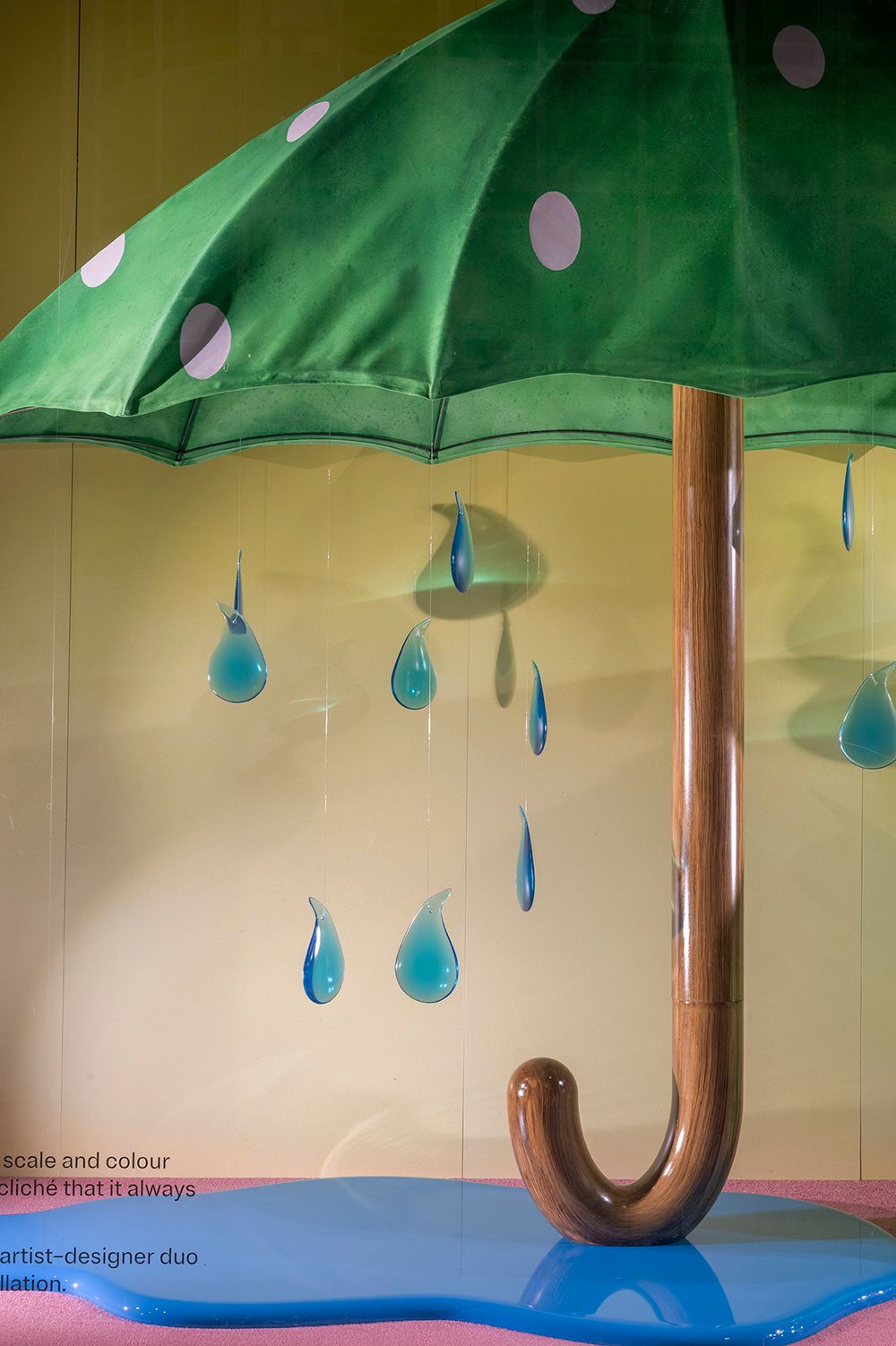Crafting three displays to fill the windows, each scene played with size and scale to create fantastical and colourful concepts. Bringing to life every day moments in surreal style, the nature-inspired displays were filled with anthropomorphic characters and large-scale organic forms, featuring a snail enjoying the garden of a French chateaux, a frog sheltering from the English rain, and a giant kite dancing on an imagined breeze.