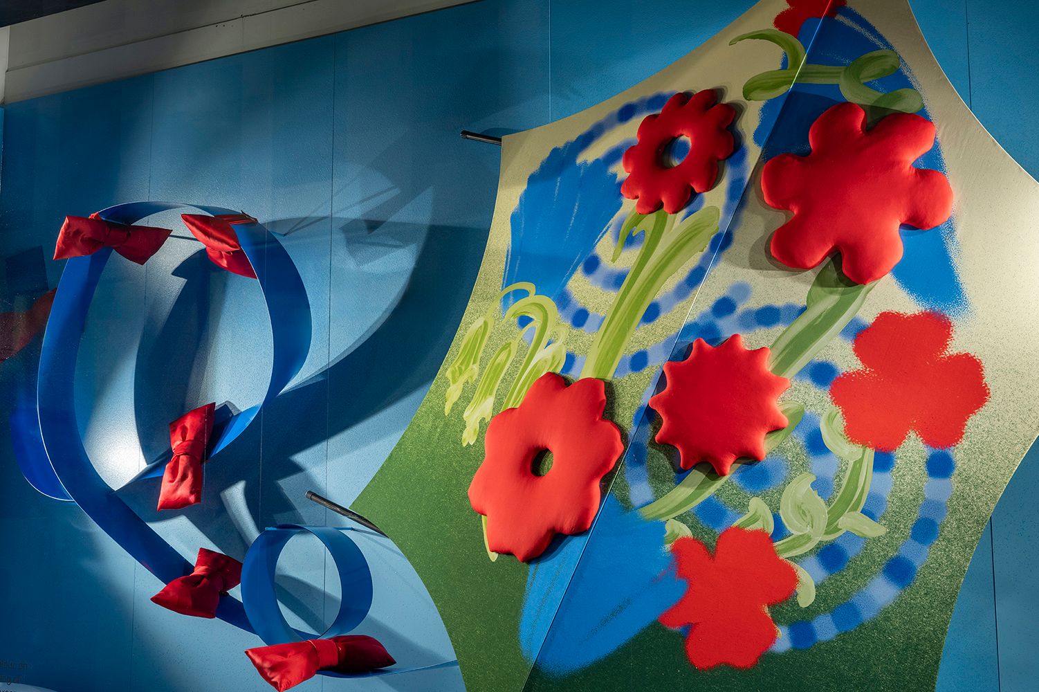 Bridging sculpture, 2D animation and graphic design, the displays bring a tactile and playful view to the retail space. Passionate about exploring the abstract, the combination of Alexis’ craft with Cezaro’s resulted in vibrant colour gradients, mixed textures and dynamic movement.