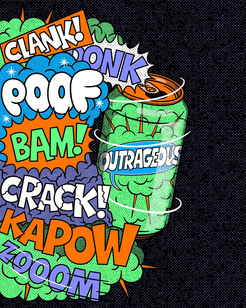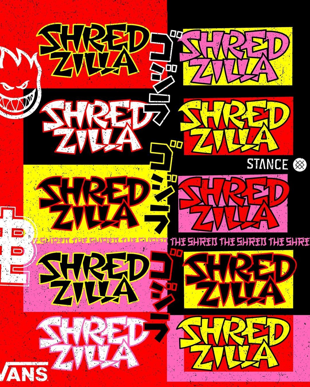 Bringing his signature textured style to the branding of the event, Justin created a central design and typography to be used across promotion, on t-shirts and on the winners cheque. Featuring a play on the iconic Godzilla character, Justin's designs are vibrant and bold with an edge befitting the skate culture they symbolise.