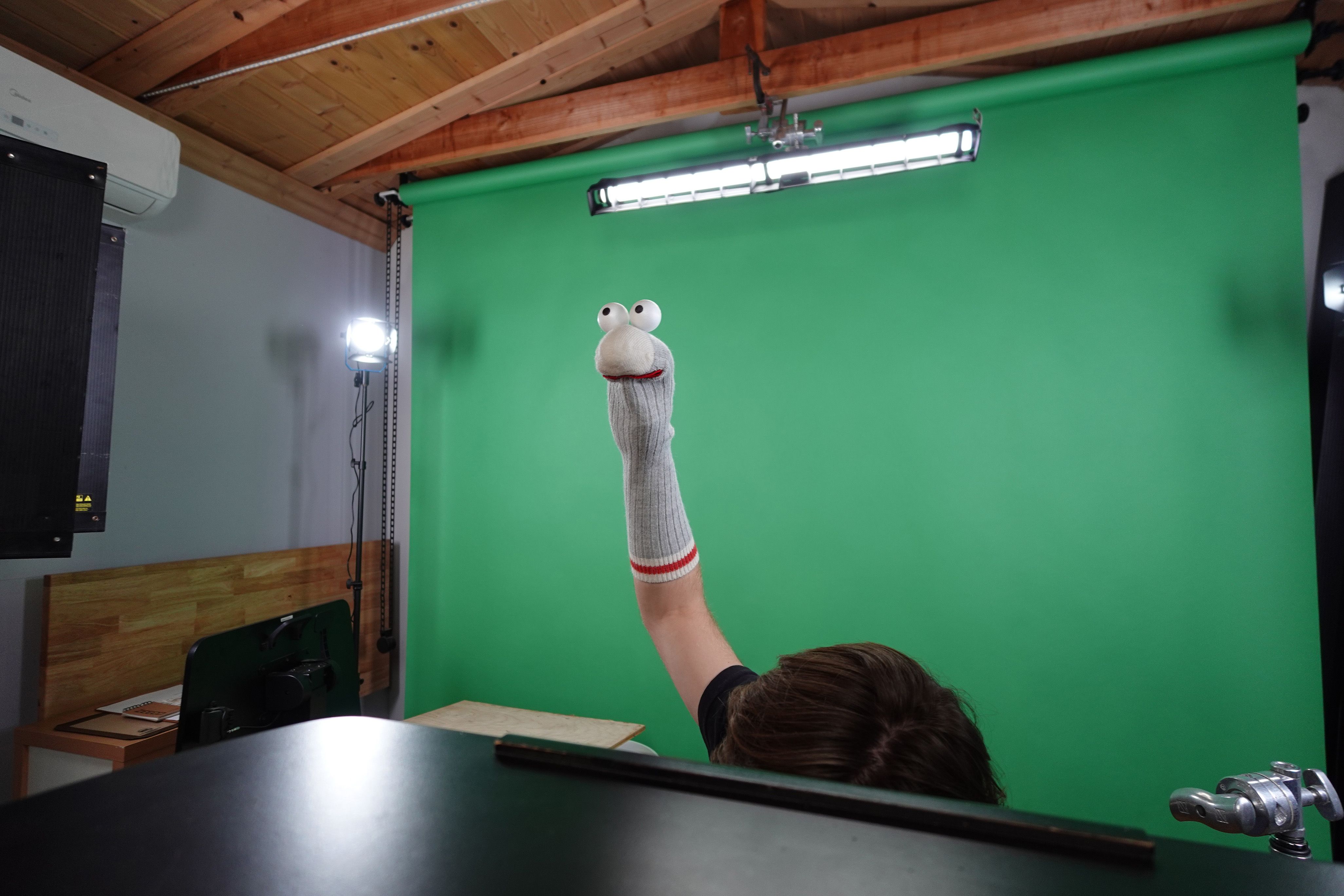 For the stage set up, Socky was filmed on a green screen with various props in the foreground and interacting with the “phone hand” to create humorous and joyful moments. Although the environments appear to be large, the set up of the shots is quite contained to ensure precision on Socky's mannerisms and expressions, as well as the overall timings.