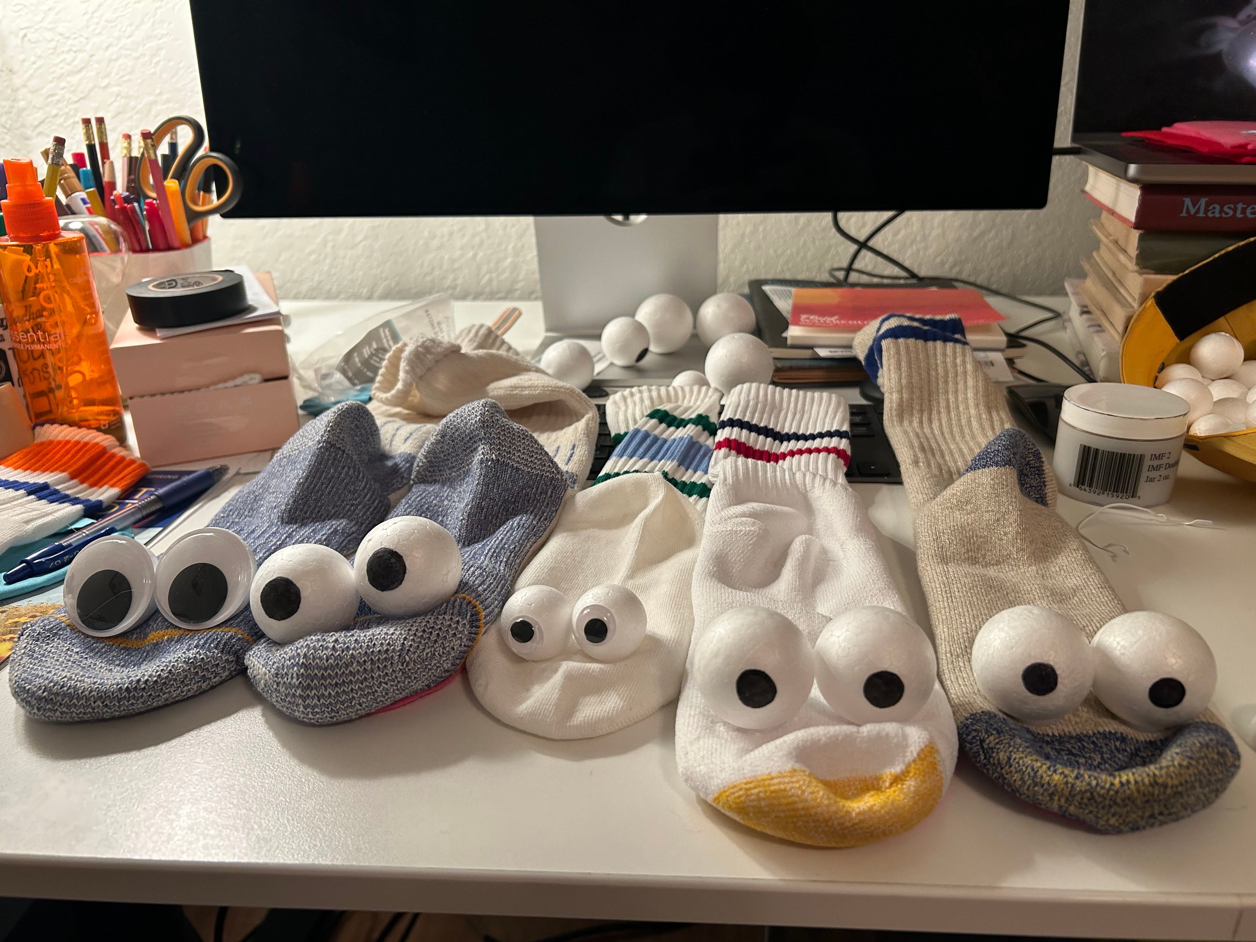 The first step in their process of bringing Socky to life was to decide what kind of sock puppet he is. Plain white tube sock, striped, coloured toe, etc all serve to craft different personalities for the main character. While Socky doesn’t talk within the spots, he did need to have the ability to form recognisable expressions and characterisations.
