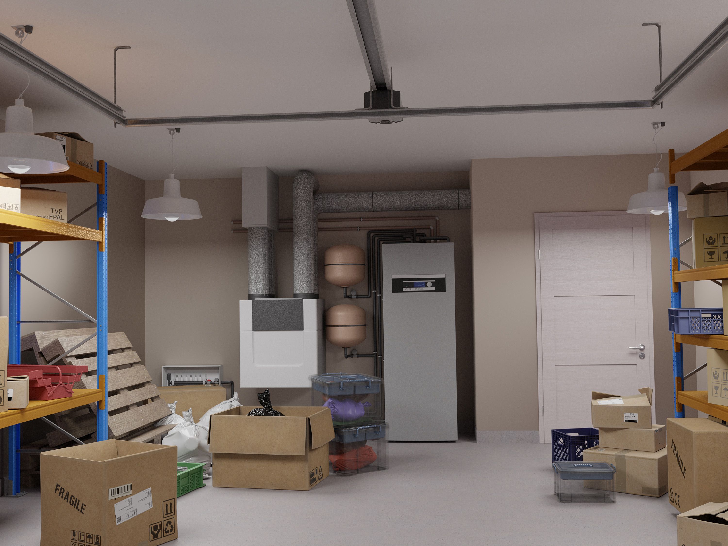 Practice's approach to building the set was to work with practical elements - buckets, boxes of junk - in the foreground, and create a 3D set for the background. This allowed Practice to improvise and change the background if needed, but also keep the practical look that was so important to Thumbtack to carry across the videos.